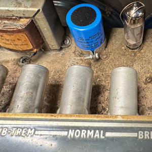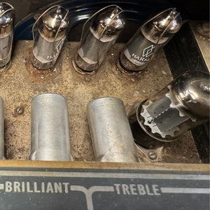 Dieser Verstärker befindet sich für sein Alter in einem sehr guten Zustand. Der Lautsprecherstoff hängt, wie bei Verstärkern dieses Alters üblich, leicht durch. Einer der Griffe an der Oberseite ist gespalten. Einige Kondensatoren wurden ausgetauscht, die übrige Verkabelung ist jedoch original und intakt. Der Verstärker wird wie besehen verkauft und benötigt eine Wartung/einen Röhrenwechsel. Er ist aber funktionsfähig. Der Verstärker wird in einem Flightcase geliefert.