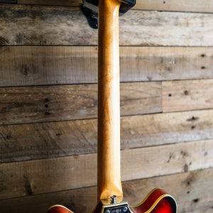 This guitar is presented in very good condition for its age with general play wear, with one noticeable area of potential stand burn on the back of the guitar. The tone knob for the volume pot is missing from the guitar. The frets show approximately 75% of life remaining and all electronics function as they should.