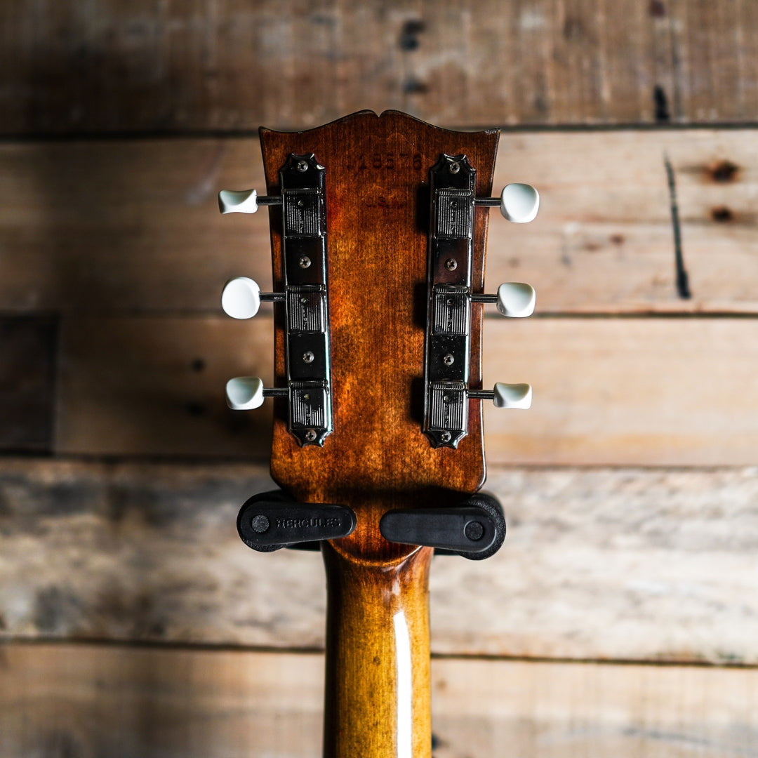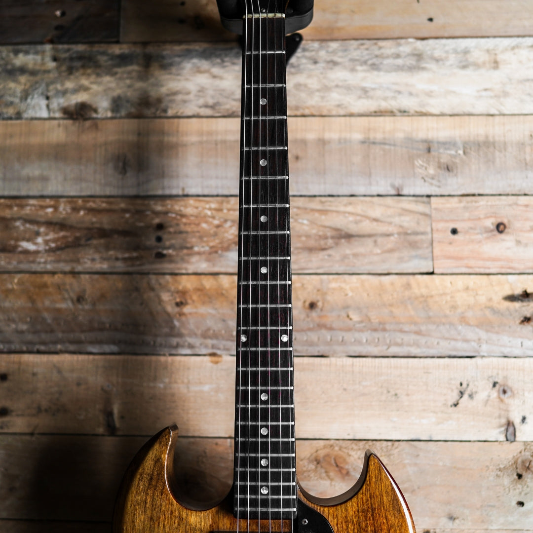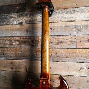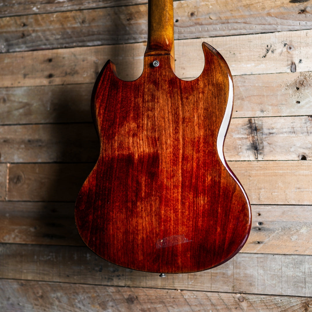 This guitar is presented in very good condition for it's age with the type of play wear you'd expect. The original cherry finish has faded to brown but the original finish can still be seen on the back and under hardware. One of the original strip tuners had sheered, so we have replaced the tuners with a Kluson set, the originals are present with the sale however. The original frets show approximately 70% of life remaining and the electronics function as expected.