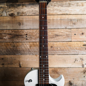 Diese Gitarre befindet sich in sehr gutem Zustand mit üblichen Gebrauchsspuren. Am Kopf sind leichte Verfärbungen zu erkennen, und Korpus und Rückseite weisen einige kleinere Dellen auf. Die Bünde sind noch zu ca. 90 % erhalten, und die Elektronik funktioniert einwandfrei.