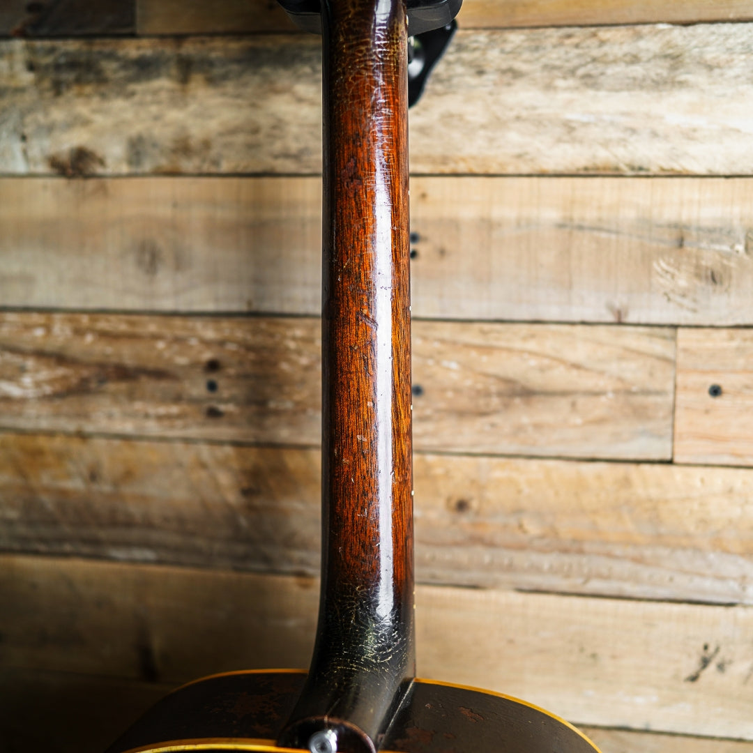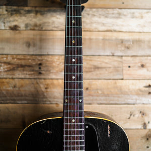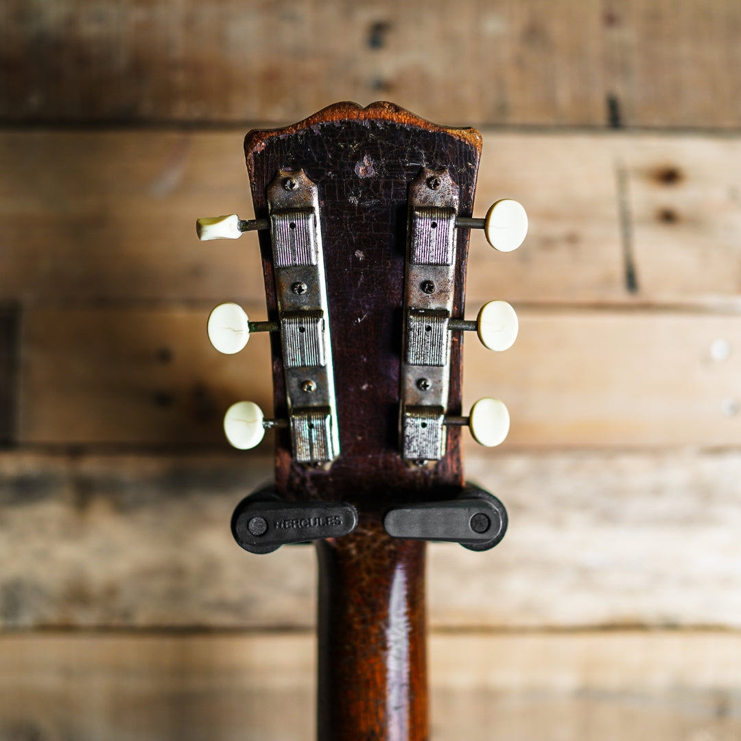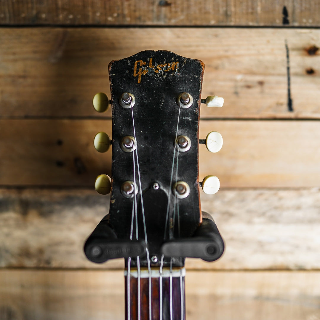 This guitar is presented in very good condition for it's age with signs of appropriate wear and upkeep. The bridge and tailpiece have been replaced as well as the pickguard and control knobs. There has been a strap pin added to the back of the neck heel which has created a slight split in the neck heel, however this is not deep and is stable. The frets are original and are on the low side, however the guitar plays very well considering - the frets show approximately 50% of life remaining. The electronics are original and function as expected.