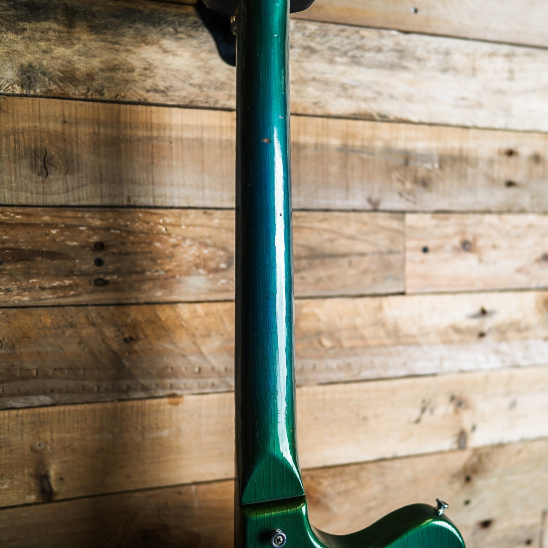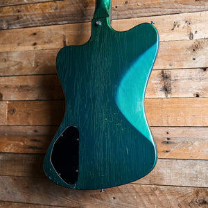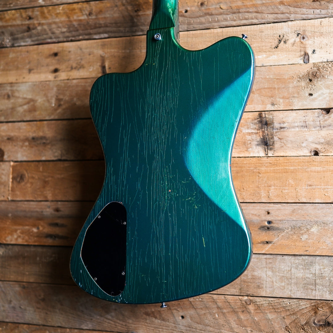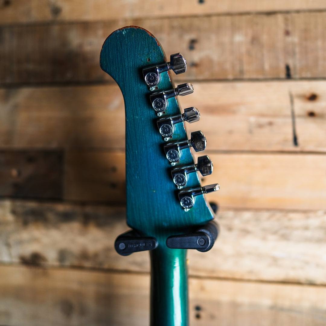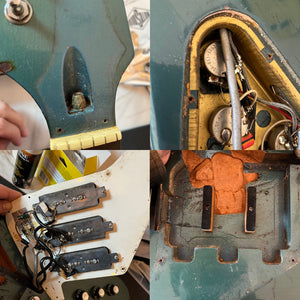 This guitar is presented in very good condition with general play wear and finish fading appropriate for its age. There has been a small amount of routing under the pickguard to allow for the addition of the mini toggle switch that was added to the pickguard - This activates the middle pickup in any position. The pots are period correct CTS pots and appear to be dated 1965, however on every pot the date code has been soldered over. The original tuners have been replaced with Schallers and the Maestro Trem has been removed. The original Pelham Blue finish has faded but can be seen under the truss rod cover. The frets show approximately 75% of life remaining and the electronics function as expected.