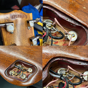 このギターは、いくつかの改造が施されていますが、良好な状態です。ギターは天然木に剥がされ、クリアラッカーで仕上げられています。オリジナルのミニハムバッキングは、コイルスプリットが施されたヴィンテージのDimarzio Super Distortionピックアップに交換されています。オリジナルのチューナーはSchallerに交換されています。フレットの寿命は約70%残っており、電気系統は正常に動作します。