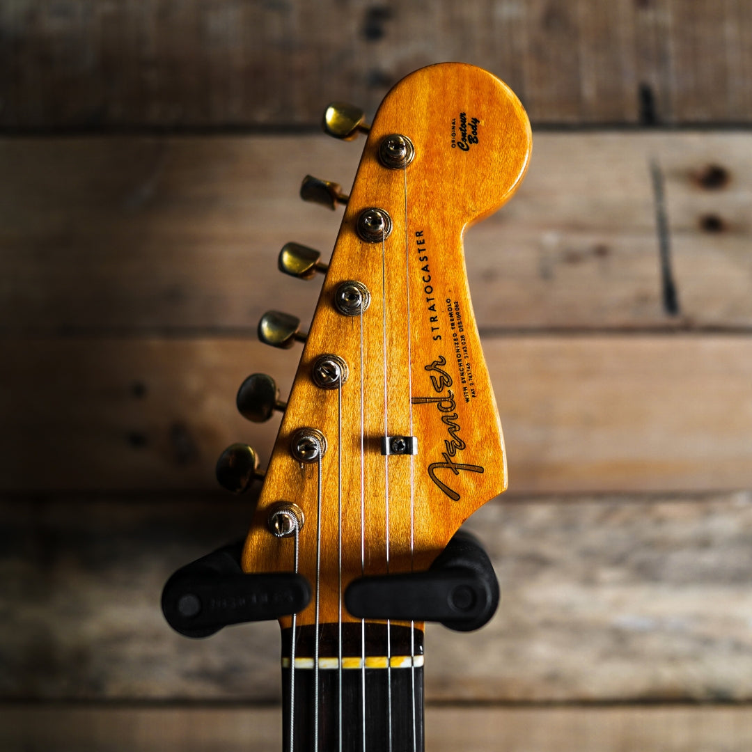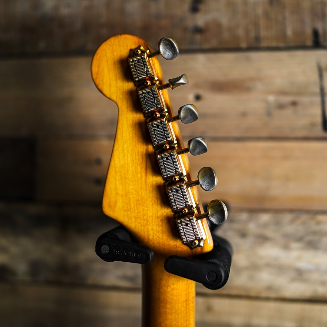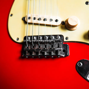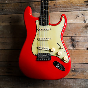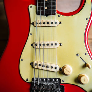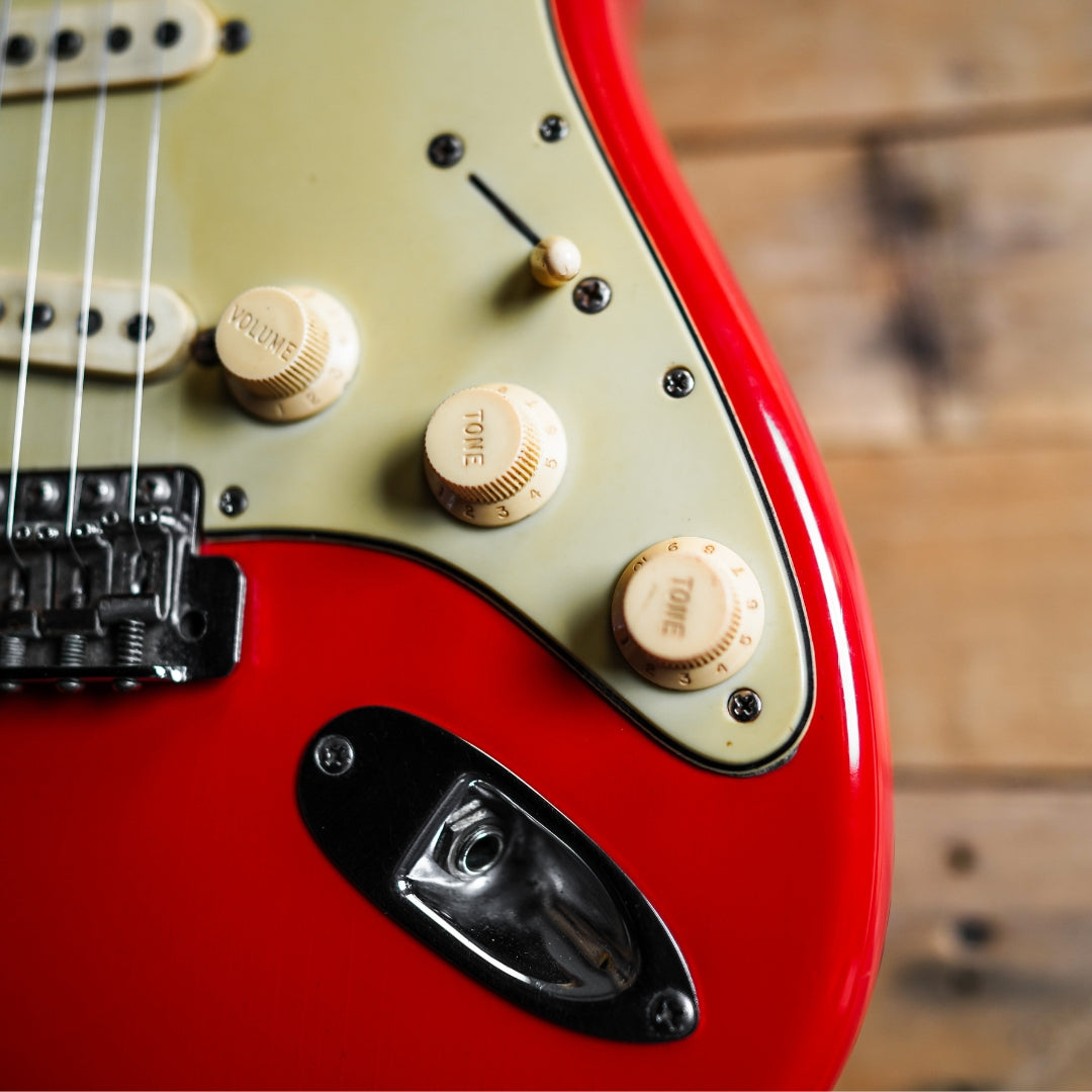 This guitar is presented in excellent condition throughout, and is a fine example of a 1962 Stratocaster. The guitar is mostly original aside from a tasteful Fiesta Red nitrocellulose refinish by Paul McNab or Paulman Guitars in the early 2000's, which is starting to check and age beautifully. Paul also resprayed the neck and face of headstock in a clear nitrocellulose, whilst still preserving the original headstock decal. The guitar features a set of aftermarket gold Kluson single-line tuners and have tarnished in parts, leading us to believe these were added early in this guitars life. The original frets are still present, and remarkably show plenty of life remaining. The original electronics are all present, with the pots dating to 1962 - the bridge pickup was recently rewound to original specification, using the original pickup wire. Further images of the guitar are available upon request.