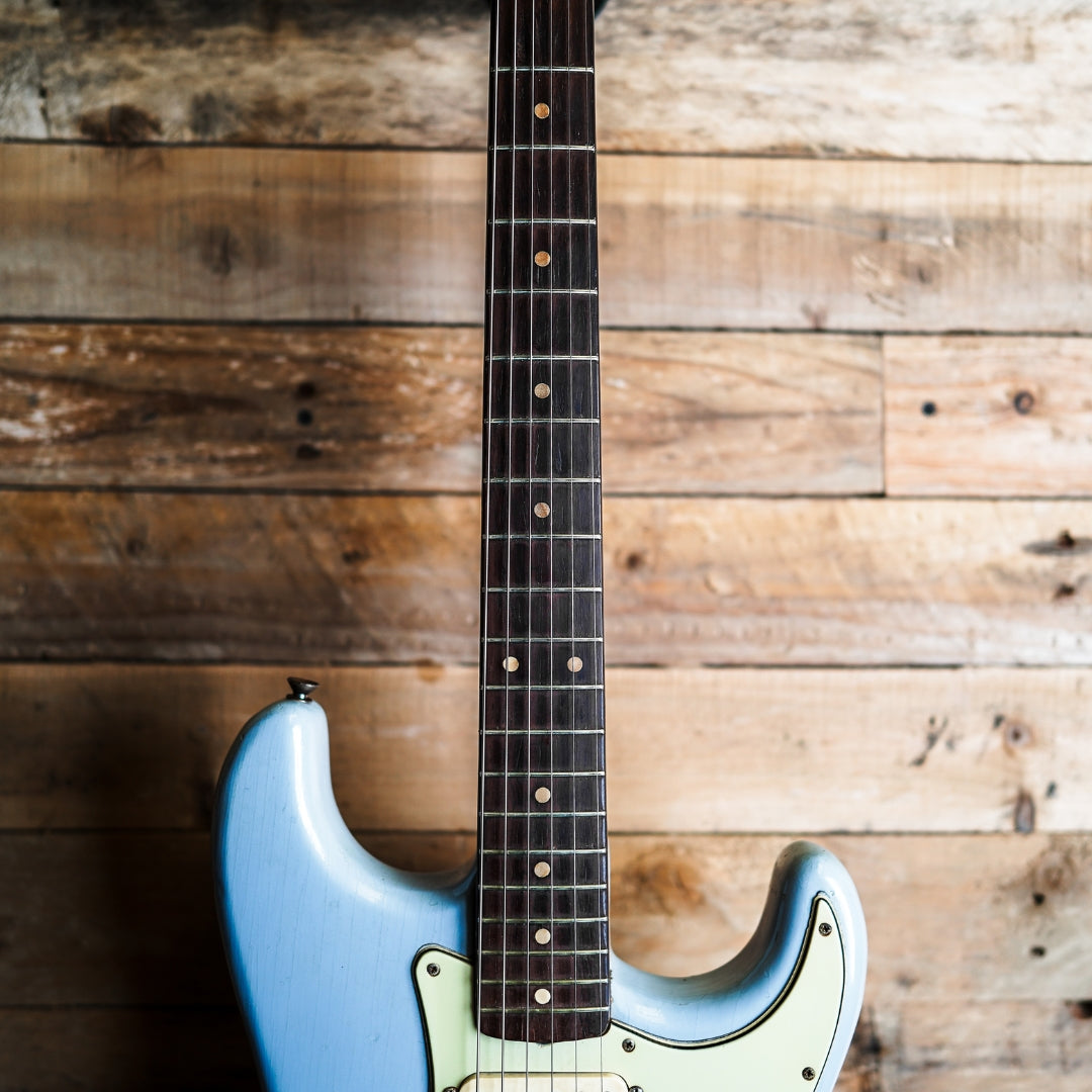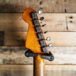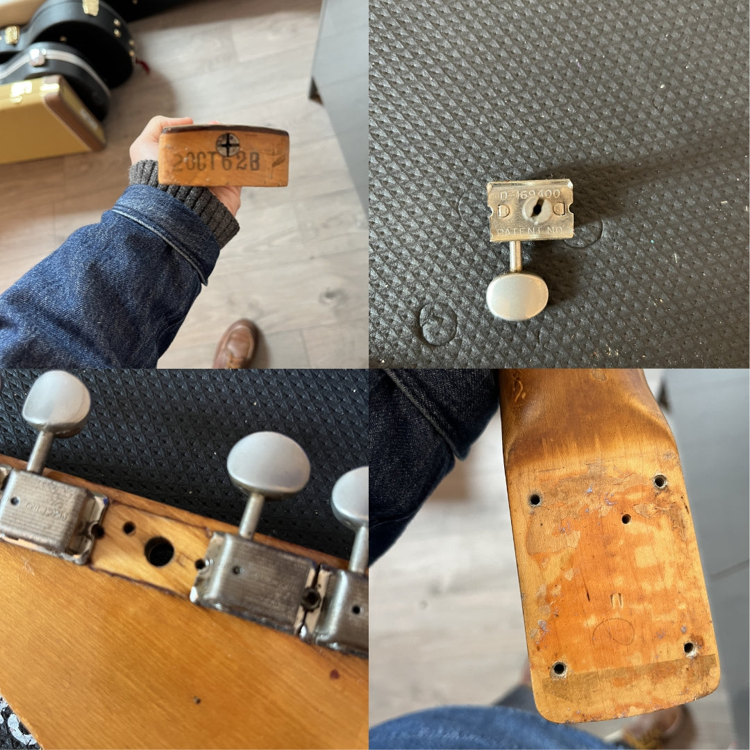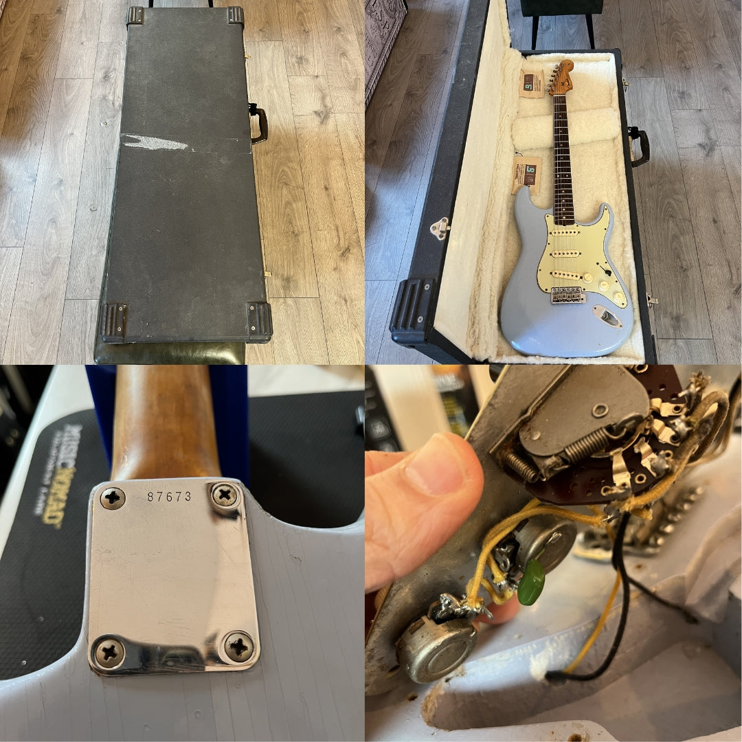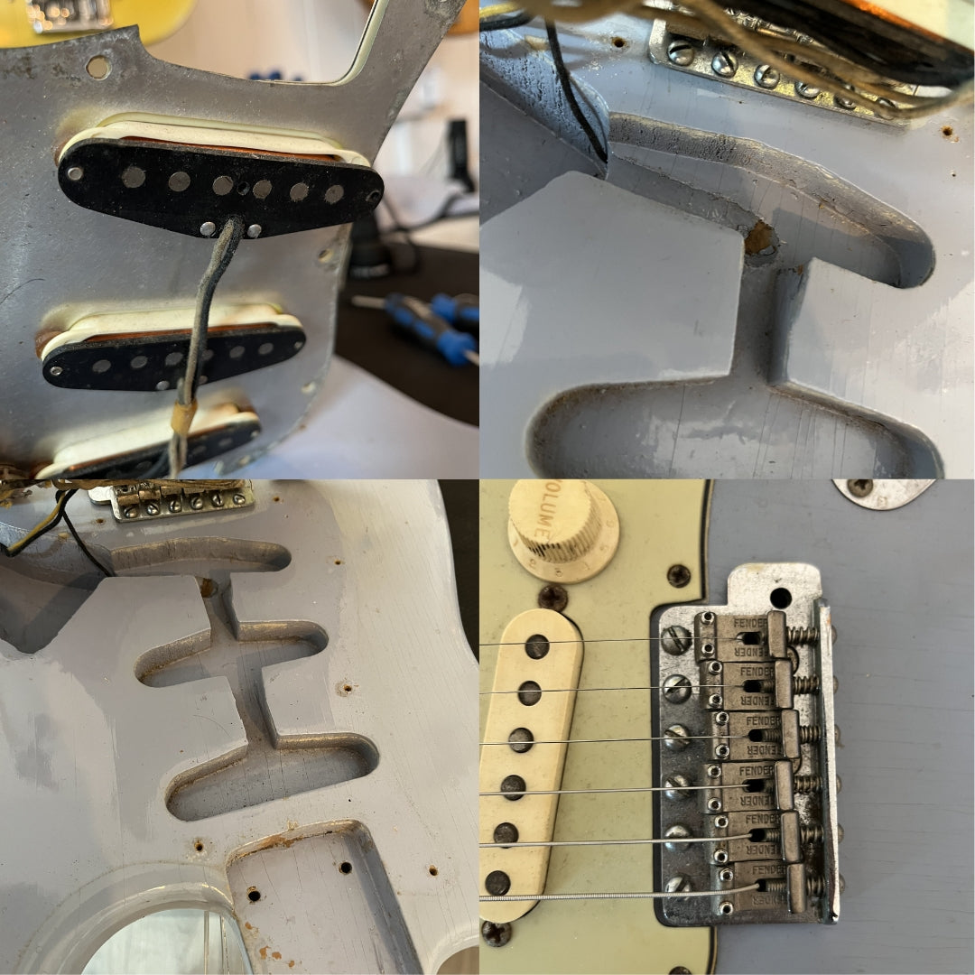 This guitar is presented in excellent condition with the kind of wear and lacquer checking you'd expect for a guitar of this age. The guitar was refinished in the late 1960s and was originally 3 tone sunburst. A capacitor has been changed in the wiring, otherwise the wiring is original and in tact. The bridge saddles have recently had to be replaced due to rust and the 6 screws on the bridge are replacement. The guitar has no original trem arm or back plate. The guitar has been refretted with the frets showing approximately 85% of life remaining. The electronics function as expected.