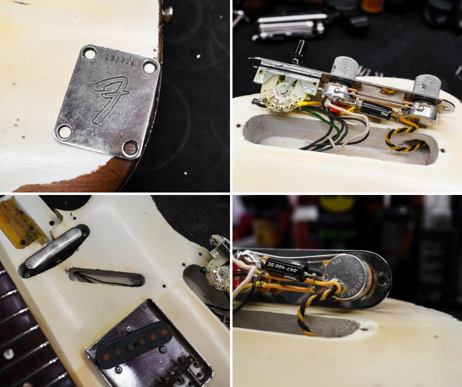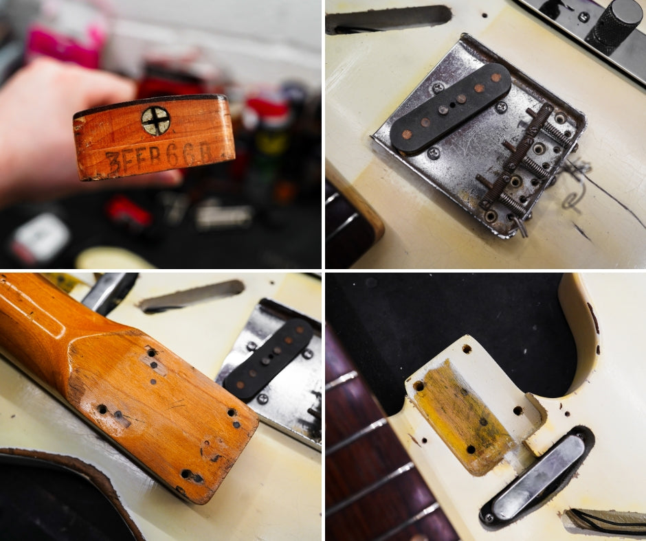 This guitar is presented in very good condition for its age. The guitar has been refinished in its original Olympic White finish having previously been refinished in Candy Apple Red for a short period of time. A Lollar '52 T Neck Pickup has been added as well as a modern wiring harness, with the original harness included in the case should you wish to restore it to factory wiring. These guitars were routed for a neck pickup in the factory, so all these mods can be completely reversed. The original pickguard is also included. The guitar has been sympathetically refretted with the frets showing 95% of life remaining. The electronics function as expected.
