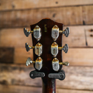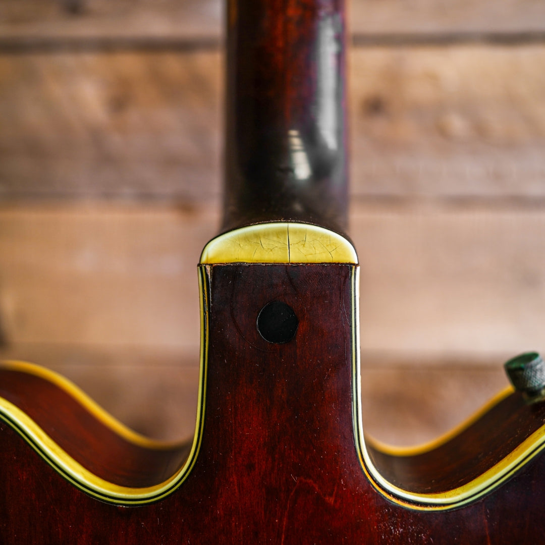 This guitar is presented in good condition for its age. The binding around the guitar is cracking and delaminating at several points on the guitar, such as the back of the neck and around the body of the guitar. Their is finish and hardware fading across the guitar. The frets show approximately 70% of life remaining and the electronics function as expected.