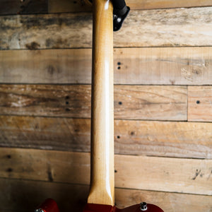 This guitar is presented in very good condition with the kind of wear you'd expect a guitar of this age to have. It has been refinished in candy apple red at some point. Other than a replacement string tree the guitar is in original condition, with pickups and wiring in tact. The original frets show approximately 50% of life remaining and the electronics function as expected.