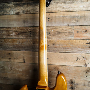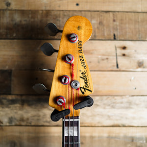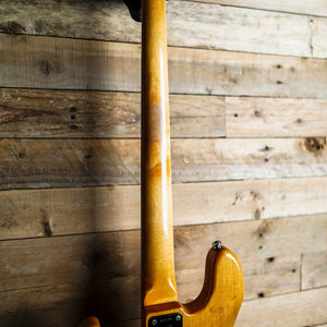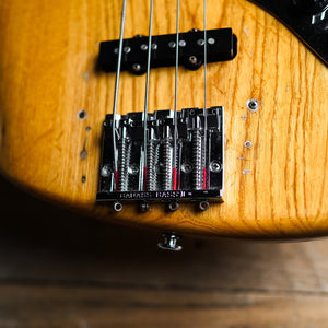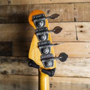 This bass is presented in very good condition with the kind of wear you'd expect to see on a bass of this age. There are some small wear patterns on the back of the neck and body, as well as some small areas where screw holes have been filled after the bridge was replaced. The original bass was replaced with a Badass II Bass Bridge, for increased sustain, stability and intonation. The original frets show approximately 80% of life remaining and the electronics function as expected.