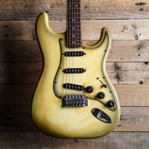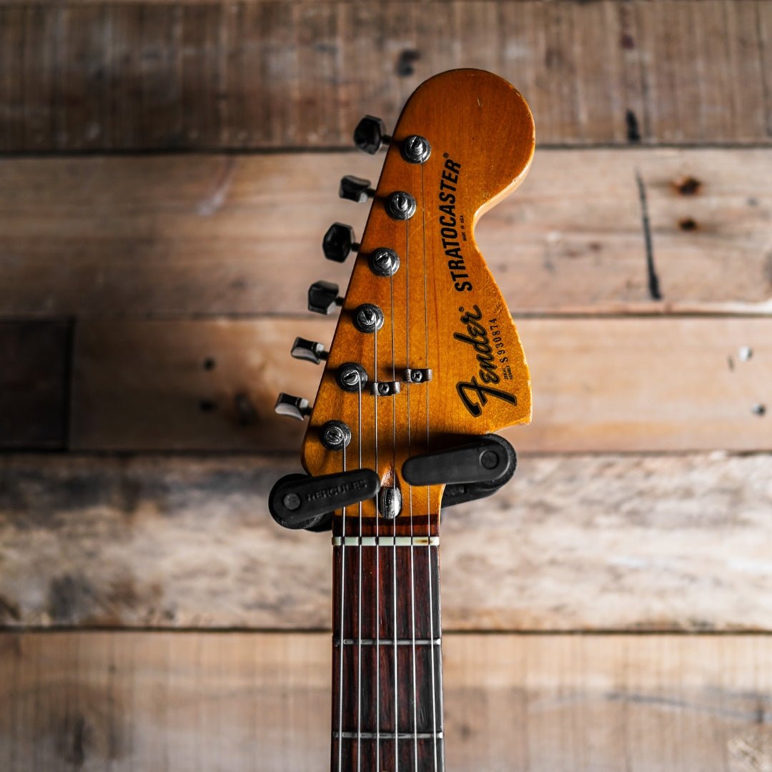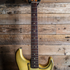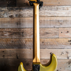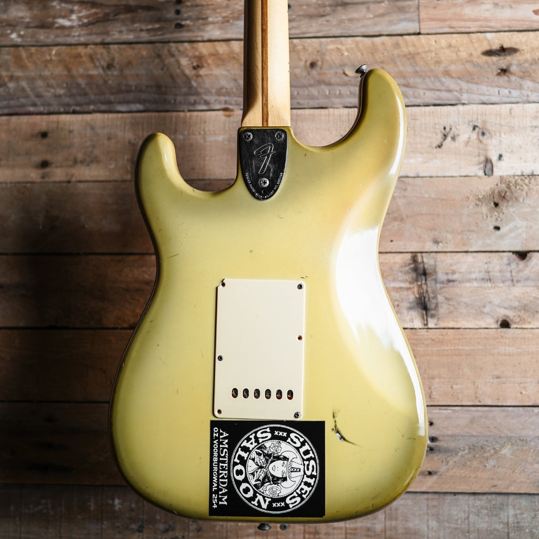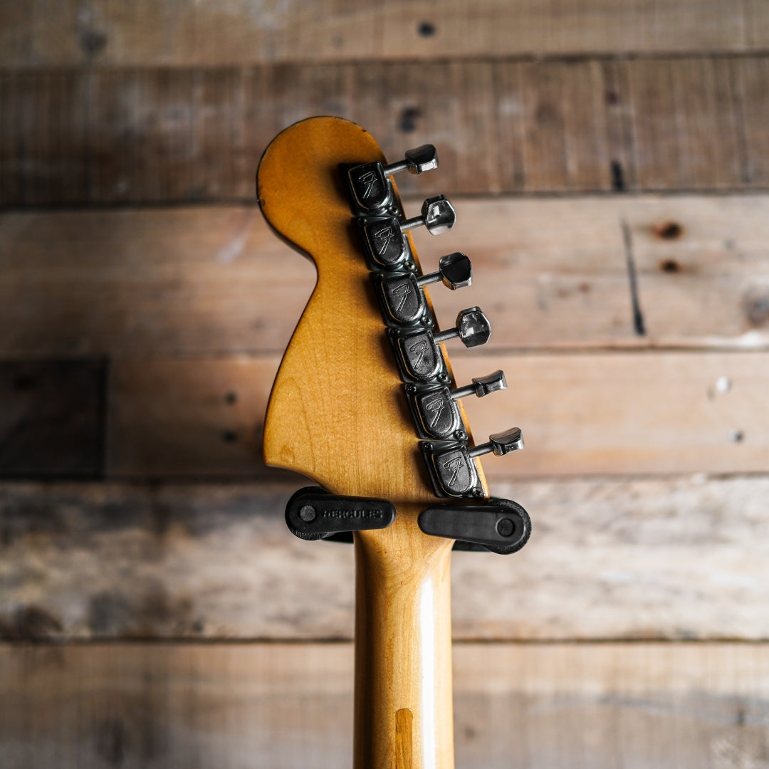 This guitar is presented in good condition with play wear appropriate for its age. There is some finish fading from where stickers have been applied to the guitar. There is a replacement screw on the jack plate and some screws missing from the tremolo cover on the back of the guitar. The frets show approximately 80% of life remaining and the electronics function as expected.