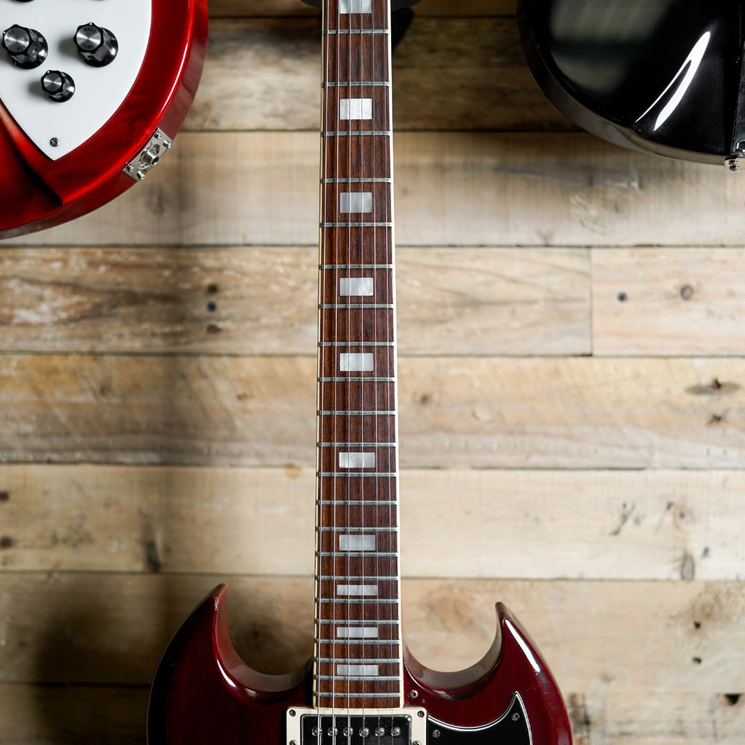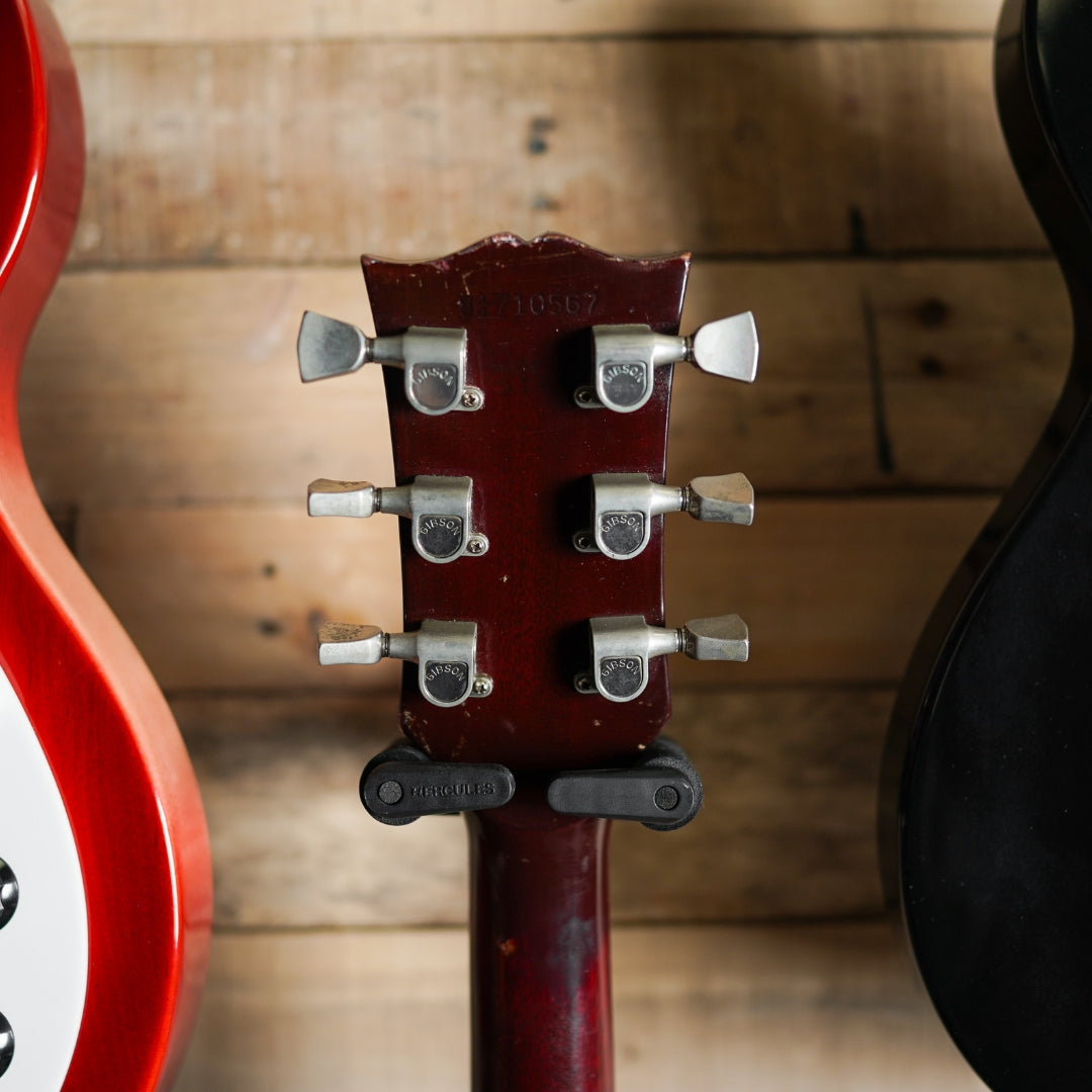 As can be seen from the listing images, this is a players-grade guitar that has been enjoyed throughout the years. It has many signs of wear to the body predominantly, and some marks to the neck. With that being said, there are no structural breaks, the electronics all work as they should, and the original frets have plenty of life remaining. At some point in its life, the pickguard and pickup surrounds have been replaced.