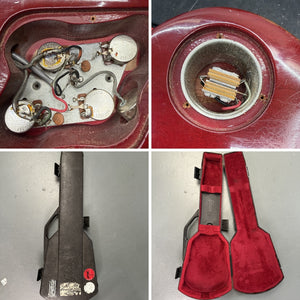 This guitar is presented in very good condition with some play wear and dings that are photographed. There has been a headstock break that has been fantastically repaired by feline guitars. The bridge has been replaced with an aftermarket tune o matic with graphtech saddles. The frets show approximately 80% of life remaining and the electronics function as expected.