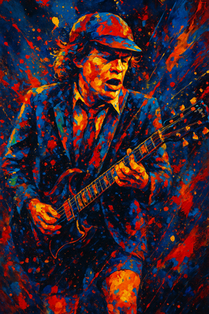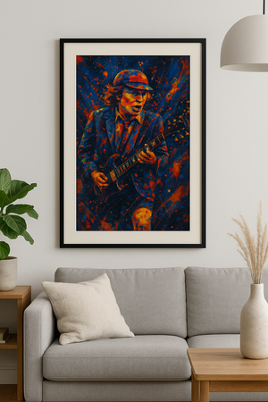 Bring the energy of rock legends into your home with this vivid abstract portrait of Angus Young. Featuring explosive paint-splatter detail and bold, electrifying colours, it’s the perfect centrepiece for music lovers and art collectors alike.