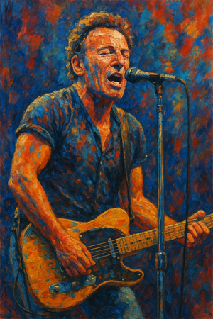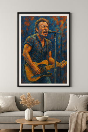 Capture the raw energy and spirit of Bruce Springsteen with this vibrant abstract art print. Featuring “The Boss” mid-performance, this A3-sized, high-resolution piece bursts with motion, colour, and soul—perfect for music lovers and collectors alike. Printed at 330 DPI for gallery-quality clarity, it’s ideal for framing and bringing rock & roll passion into your home or studio.