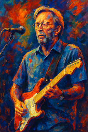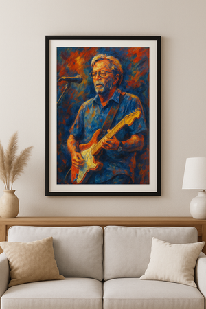 Bring soulful energy and musical artistry into your space with this expressive abstract painting of a live guitarist, inspired by the legendary Eric Clapton. Captured in bold brushstrokes and vibrant hues, this A4-sized artwork blends the raw emotion of blues with the dynamic power of performance art.