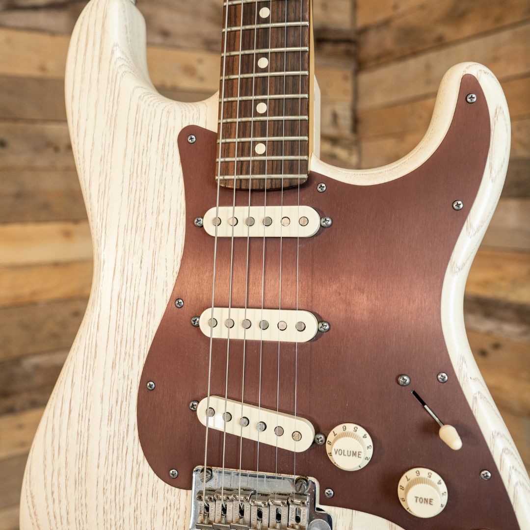 A very special Fender! Featuring a light Ash body, Custom Shop pickups, and an anodized aluminum pickguard, you don't see many Strats quite like this.