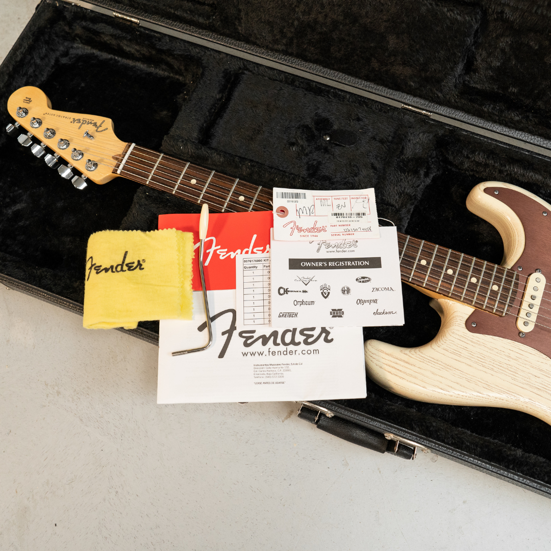 Fender FSR American Standard Rustic Ash Stratocaster in Olympic White