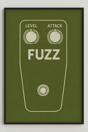 Celebrate classic tone and timeless design with this A4 art print featuring a vintage fuzz pedal inspired by the iconic Vox Tone Bender. Set against a rich US Army Green background, the clean white illustration creates a bold, minimalist aesthetic perfect for music lovers and vintage gear enthusiasts. Printed on premium matte paper for a refined finish, this poster brings retro character to any studio, rehearsal space, or home interior. Ready to frame and hang.