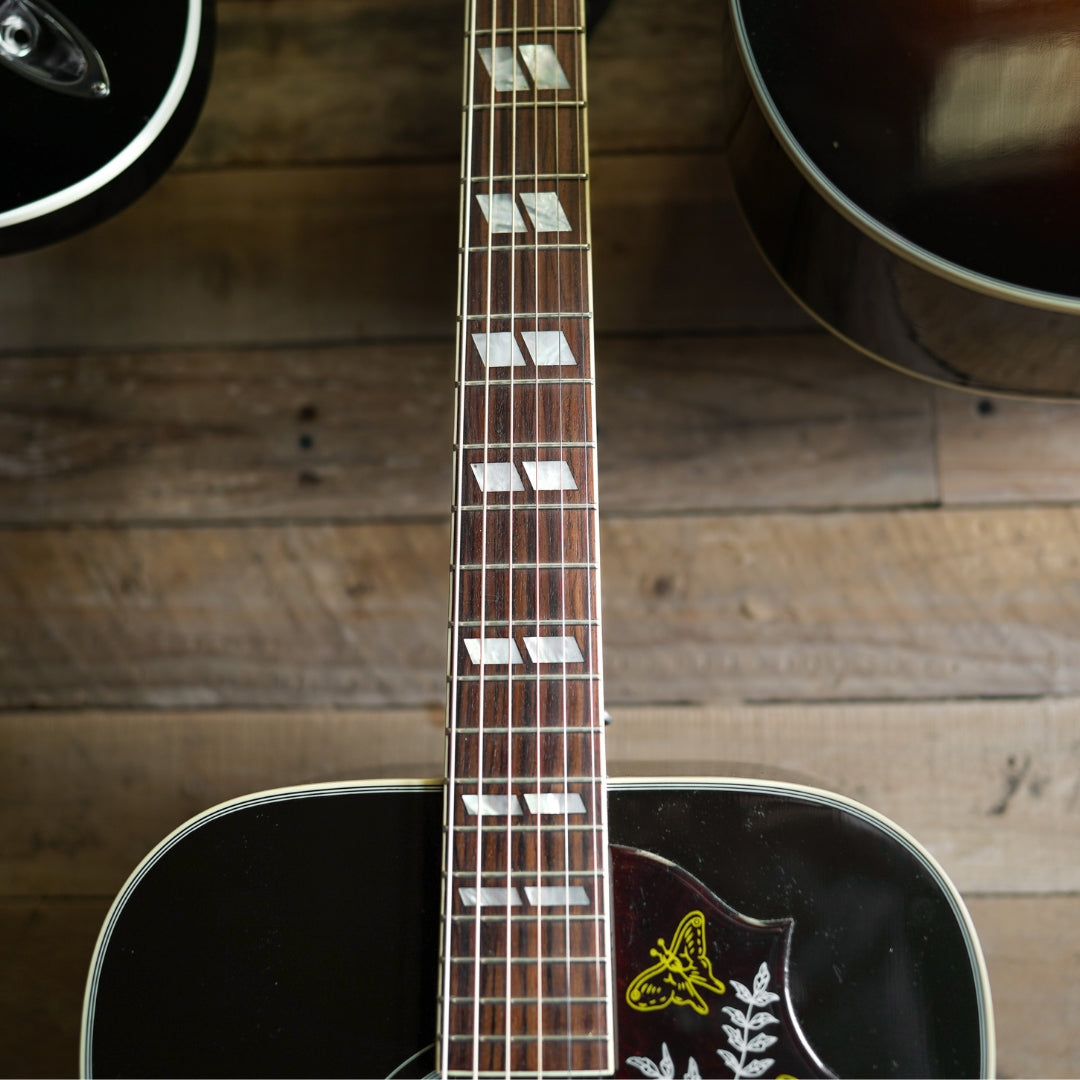 This Hummingbird is presented in mint condition with no noticeable blemishes, scratches, or marks. The frets have plenty of life remaining and the electronics all work as they should.