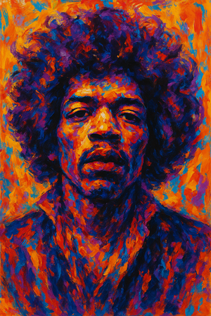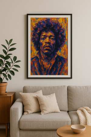 Ignite your space with the electric energy of Jimi Hendrix. This vibrant A4 abstract portrait blends psychedelic colours and bold brushstrokes to capture the essence of a rock legend. Perfect for music lovers and art collectors, it’s a striking addition to any modern living room, studio, or gallery wall.