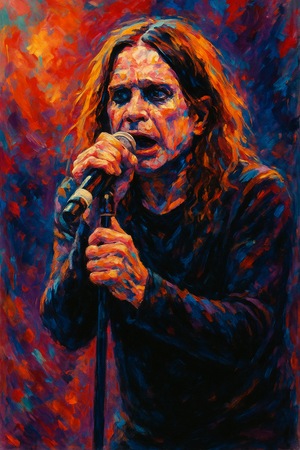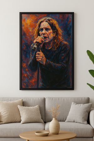 Capture the raw energy of Ozzy Osbourne live on stage with this vivid A3-sized abstract art print. Bursting with electric colour and expressive brushwork, this high-resolution 330 DPI piece brings heavy metal spirit into any space. Perfect for music lovers and art collectors alike.