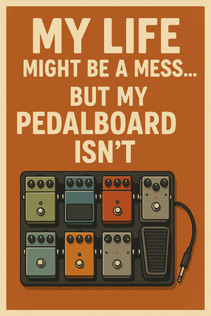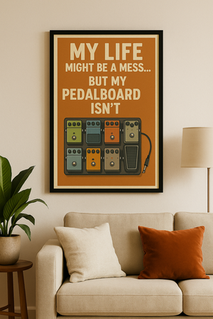 Bring personality and a touch of humour to your jam space with this bold, vintage-inspired A4 poster! Perfect for guitarists and tone chasers alike, this print proudly declares what really matters: pedalboard perfection. With rich, warm colours and a meticulously illustrated pedal setup, this poster adds a pro vibe to any studio, rehearsal room, or living room wall.
