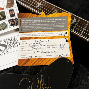 A very special PRS! Back in 2015 for one year only, PRS released a limited run of their SE, S2, Core and Private Stock lines. For sale here is one of their 'Final 100' 30th Anniversary Custom 24's. As part of the final 100 made, PRS chose to finish these guitars in non-standard or artist/private stock colors, and Paul Reed Smith also hand-signed and numbered the back plate for each of these guitars - this one being number 88 of 100!