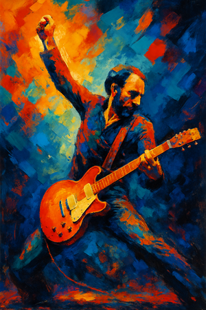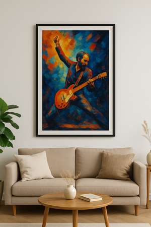 Electrify your space with this dynamic Abstract Guitarist Poster, inspired by the explosive stage presence of rock legends. Captured in a striking pose reminiscent of Pete Townshend’s iconic windmill move, this vivid artwork blends expressive brush strokes and high-energy colour to bring music to life on your walls.