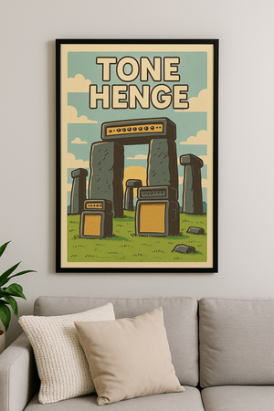 Add a dose of humour and rock ‘n’ roll to your space with this playful cartoon-style “Tone Henge” poster. Featuring guitar amps stacked like ancient stones, it’s the perfect piece for musicians, music lovers, and anyone with a good sense of humor. Ideal for studio walls, living rooms, or jam dens.