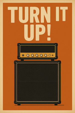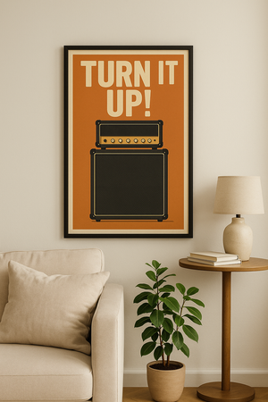 Make a bold statement with our Turn It Up! poster – a tribute to rock ‘n’ roll energy and vintage amp culture. Featuring a stylised guitar amplifier stack and retro-inspired typography, this A4 print brings the power of music into any room. Whether you’re decorating a music studio, living room, or creative workspace, this eye-catching design adds the perfect blend of nostalgia and attitude.