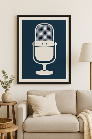 Bring timeless style and musical inspiration to your space with this striking vintage-style microphone art print. Designed with a deep blue backdrop and a crisp white silhouette, this poster offers a bold, minimalist look that’s perfect for studios, living rooms, creative offices, or anyone passionate about music and classic design.